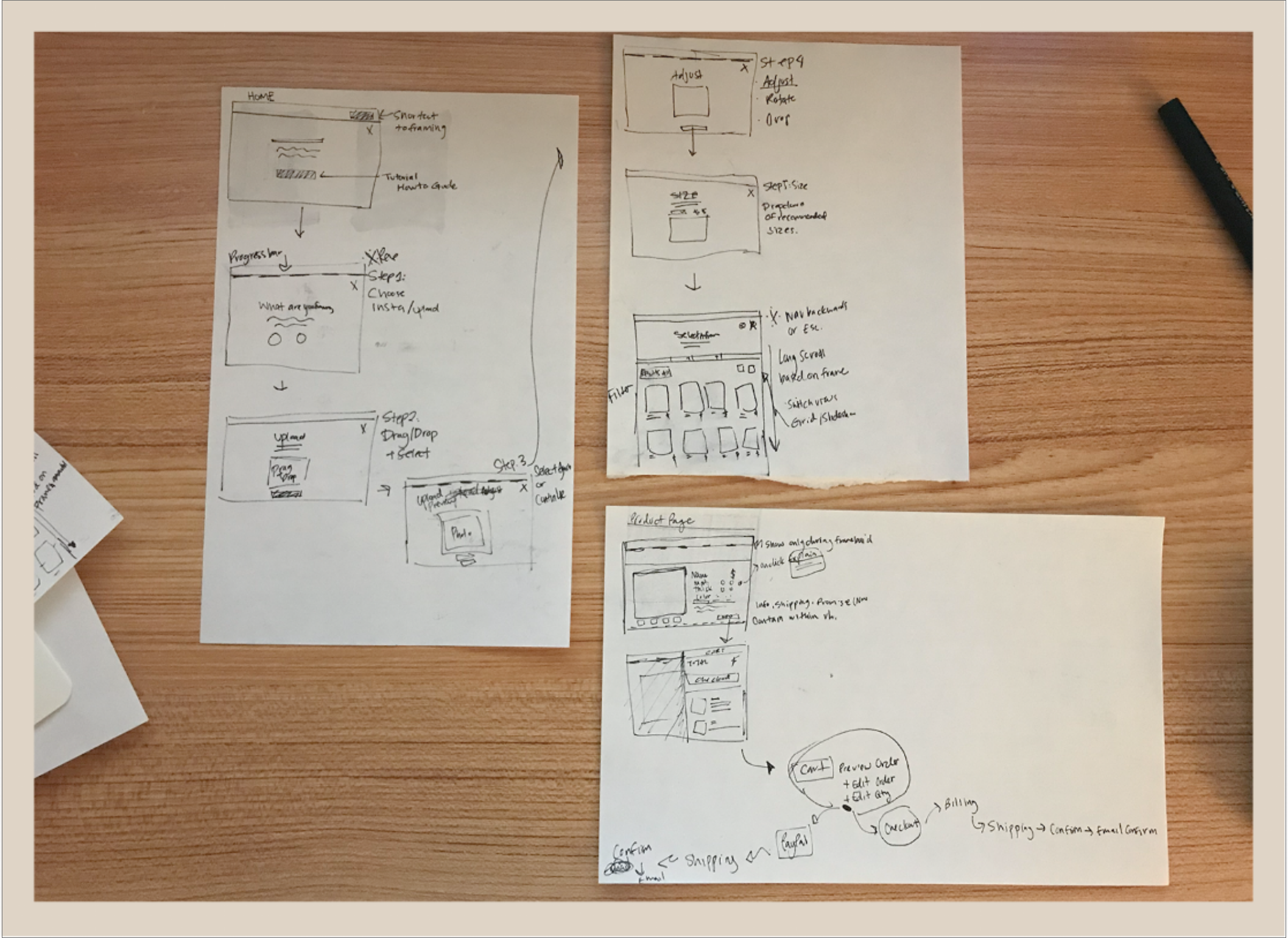 This functionality will be accessible on both mobile and desktop platforms. After performing a competitive analysis and ongoing conversations with developer and client to grasp the necessary constraints and requirements, I crafted a step-by-step user flow. For the initial MVP, we took inspiration from our own shopping behaviors, focusing on the ability to move back and forth between customization options and editing items in the shopping cart, rather than pushing directly towards the purchase process.